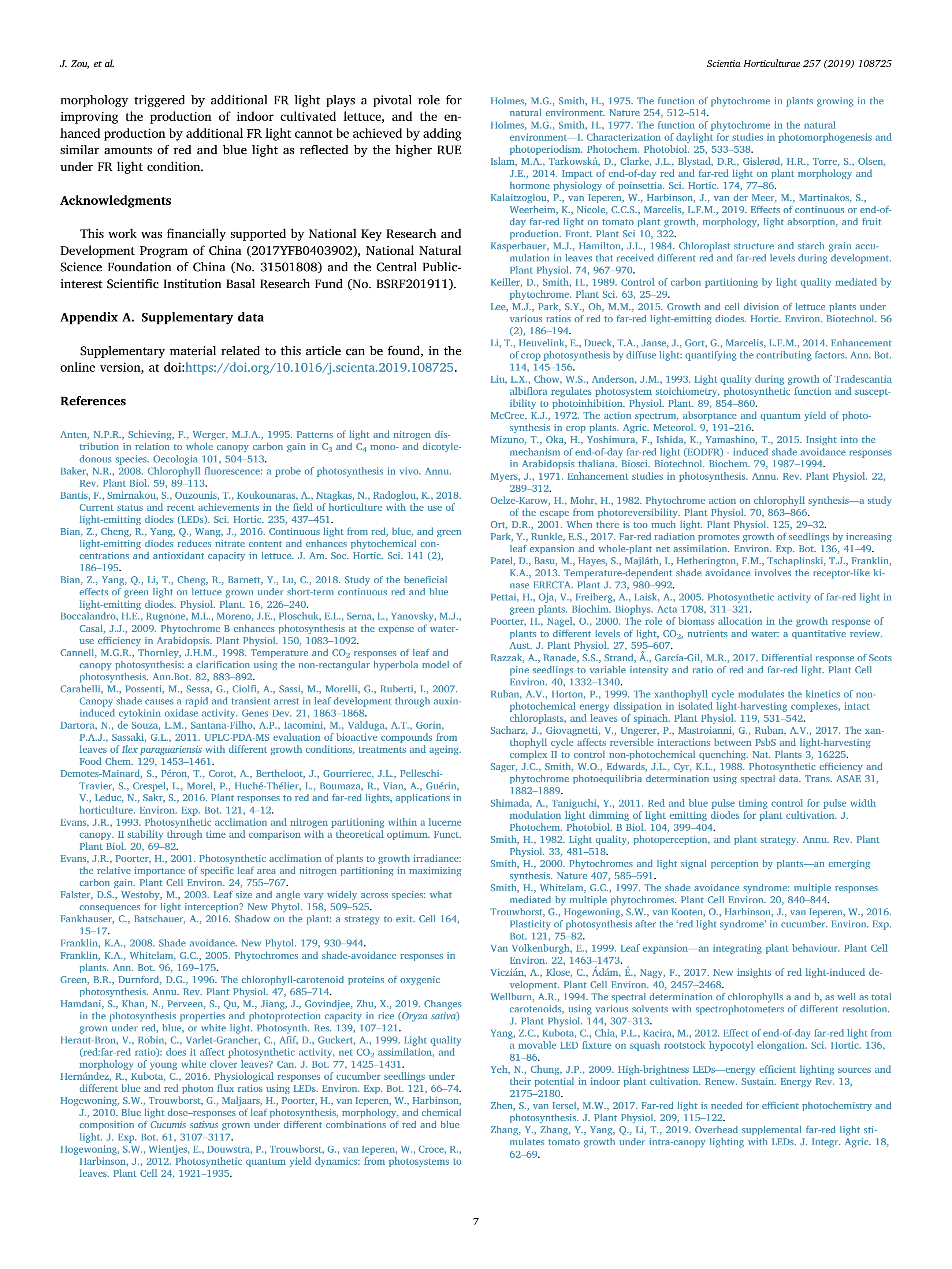 Morphological and physiological properties of indoor cultivated lettuce in response to additional far-red light